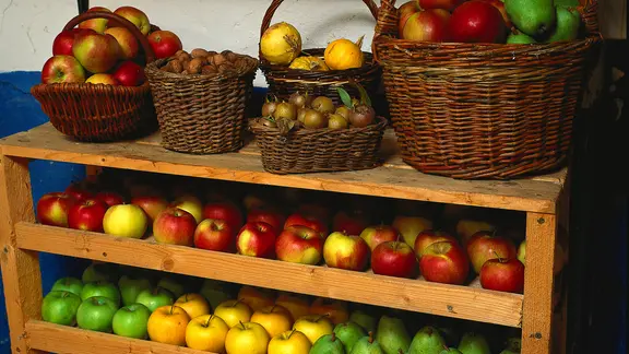 Der Apfel ist in Deutschland das beliebteste Obst und hat eine lange Tradition. Äpfel sind lecker und in der Küche vielseitig verwendbar. Trotz der großen Vielfalt gibt es im Handel nur etwa 30 bedeutende Sorten, im Supermarkt sind meist nur einige wenige Apfelsorten zu finden. In Bio- und Hofläden sowie auf Märkten ist die Auswahl meist größer. Dank ihrer langen Haltbarkeit sind regionale Äpfel fast das ganze Jahr über erhältlich.