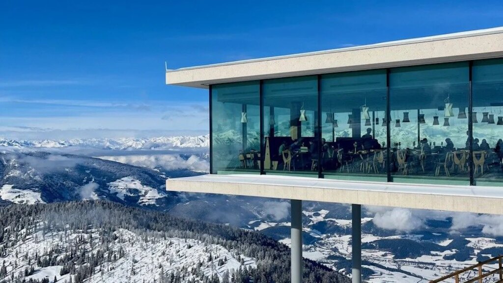 Liebe geht durch den Magen, heißt es. In diesem Restaurant geht Licht durch den Magen: Von der Decke baumeln Lampen, deren Schirme aus Schweinemägen gefertigt wurden. Der Boden ist aus Lärchenholz, die Deckenverkleidungen sind aus handgefärbten Wollstoffen der Brunecker Textilfirma Moessmer, Tische und Stühle von Schreinern aus dem Tal. Die Inneneinrichtung des Restaurants „AlpiNN“ auf dem Gipfel des Kronplatz wurde vom Südtiroler Designer Martino Gamper entworfen. Fast noch ästhetischer als der Restaurant-Glaskasten, der über der Talabfahrt zu schweben scheint, ist der Blick nach draußen: Durch die raumhohen Panoramascheiben bestaunt man „die schönste Architektur der Welt“, wie der Stadtplaner Le Corbusier die Dolomiten nannte.