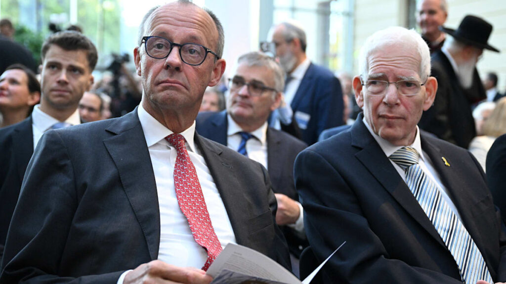 Kanzler Friedrich Merz und der Präsident des Zentralrats der Juden, Josef Schuster, sprechen nacheinander im Jüdischen Museum Berlin. In ihren Reden werden leise Dissonanzen hörbar.