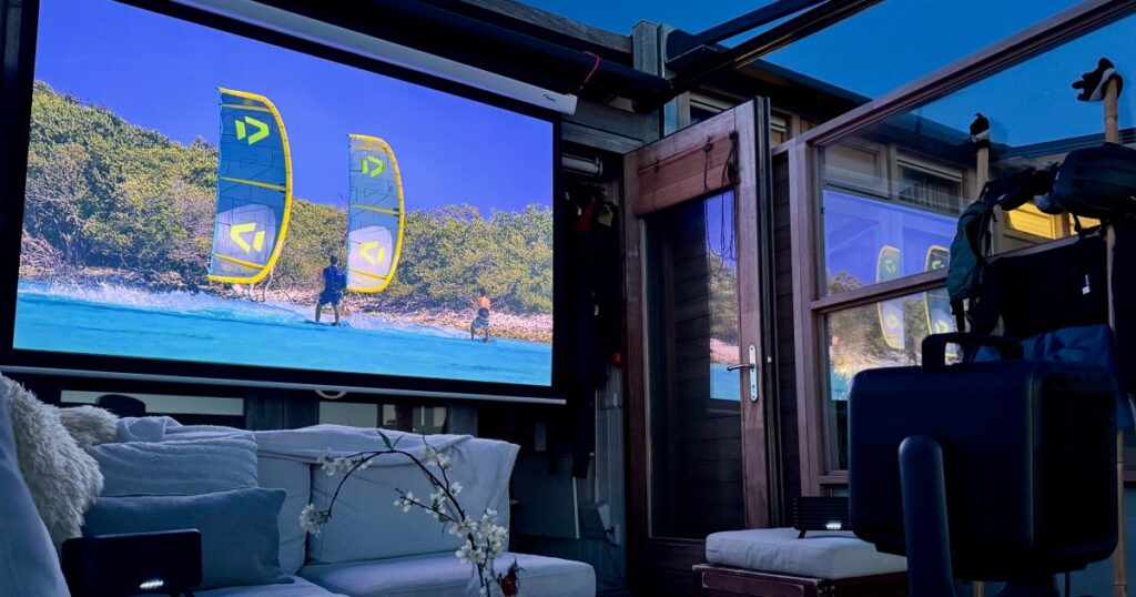 With the audio turned down the projector is largely silent thanks to its liquid cooling. The fan kicked in on an especially hot day of testing, but I could barely hear it (measuring just 26dB from a distance of 1 meter) over the regular din of a living room or waves crashing beyond.