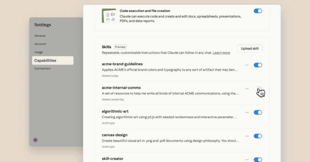 Brad Abrams, a product lead at Anthropic, told The Verge that “the thing that’s interesting to me about Skills is basically about agents.” He said that Skills as a feature essentially provides organizations building agents a way to teach Claude to do a good job “in their specific context.” He emphasized that it’s not about meeting arbitrary benchmarks — it’s about being able to do the task you need at your own company.