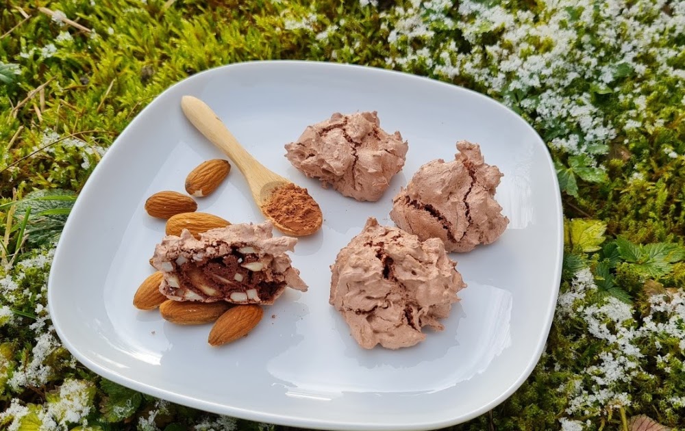 Eiweiß wird mit Zucker steif geschlagen, dazu kommen blanchierte Mandeln, die gestiftelt wurden, und Kakao. Letzterer muss stark entölt sein, damit das Baiser nicht zusammenfällt.