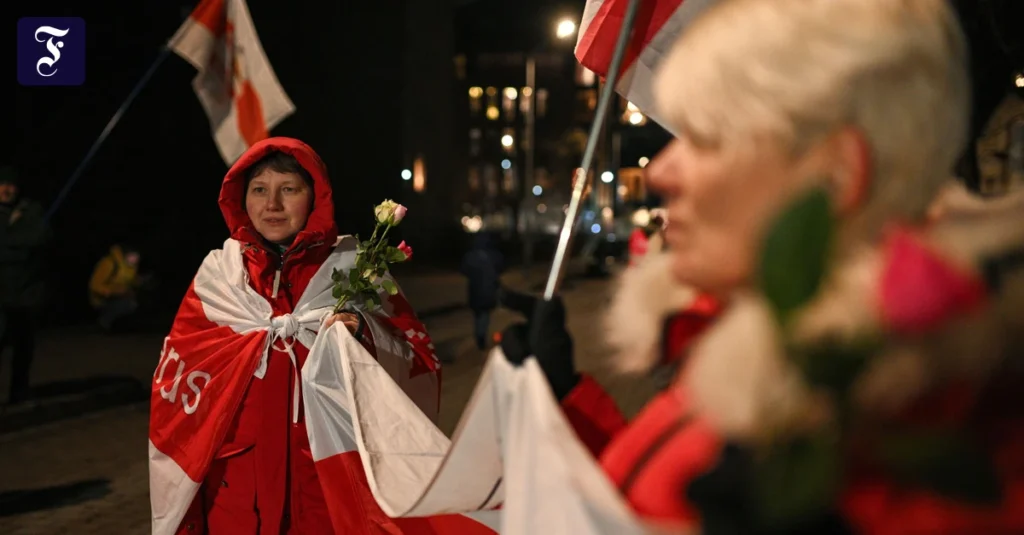 Freude über die Freilassung: Mitglieder der belarussischen Minderheit vor der US-Botschaft in Vilnius