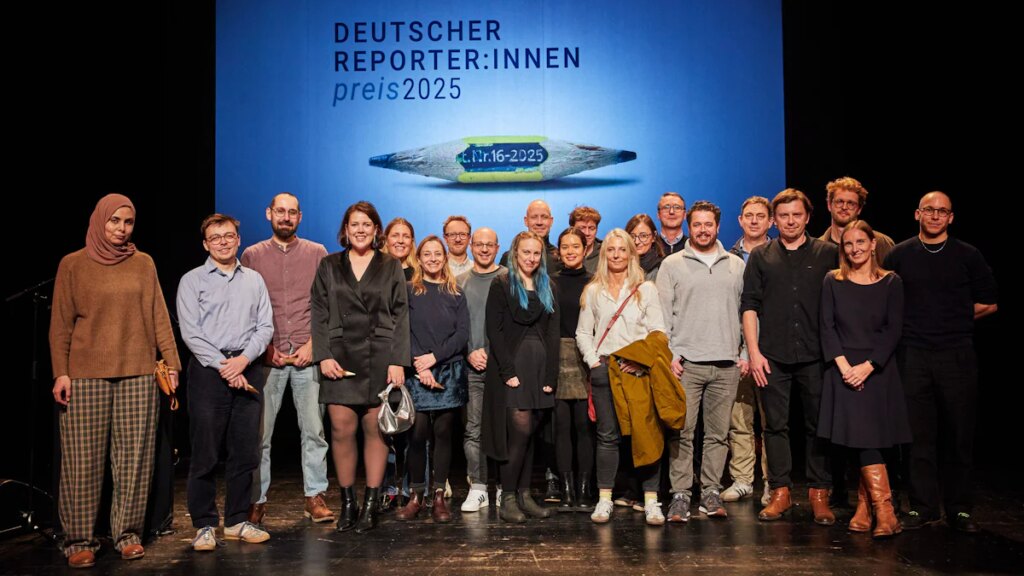 Ein besonderer Moment, auch einer, der über das übliche Branchengeklatsche hinausgeht, kam am Montagabend, als das „Reporter:innen-Forum“ den Sonderpreis verlieh. Im Berliner Heimathafen Neukölln hatte Claus Kleber soeben die Laudatio auf die palästinensische Journalistin Ghada Alkurd gehalten, die per Video aus Gaza zugeschaltet war. Von dort berichtet sie unter anderem für den Spiegel und die BBC und, so die Jury, ihre Recherchen machten sichtbar, was sonst verborgen bliebe: Menschenrechtsverletzungen, Kriegsverbrechen und das Leid der Zivilbevölkerung. Vor Ort nahm ihre Schwester den Preis für Alkurd entgegen, und als sich die beiden am Bildschirm sahen, hatte das etwas sehr Berührendes, es gab Standing Ovations.