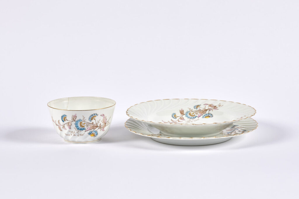Viele Deutschen wussten oder ahnten nicht nur vom Holocaust, sie profitierten direkt davon. In einer Vitrine stehen Suppentasse und Teller mit dezentem Muster. Sie waren einmal Eigentum des Mainzer jüdischen Ehepaars Erna und Felix Ganz, die 1942 deportiert wurden. Ihr Geschirr – Teil eines Services für zwölf Personen – geriet wie überall in Deutschland mit dem Hausrat der Verschleppten geschehen – in eine öffentliche Auktion. Dort erwarb es der Gymnasiallehrer Karl Held, seit 1933 Mitglied der NSDAP. Das Ehepaar Ganz wurde 1944 in Auschwitz ermordet. Woher das eigene Familiensilber wohl stammen mag, mögen sich da manche Ausstellungsbesucher fragen.