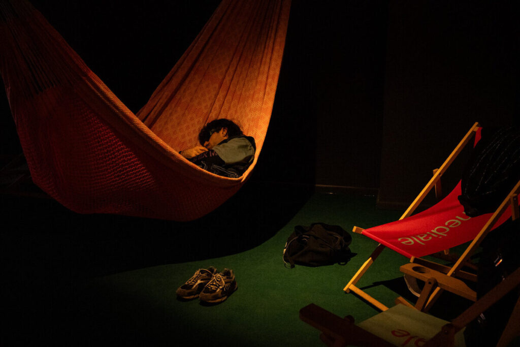 Und ganz viele Aktivitäten zum Dabeisein und Mitmachen: Siebdrucken, Sauerteig ansetzen, sich die Nägel machen lassen, allmorgendliche „ritualistische Spaziergänge“. Sowie eine Veranstaltung mit dem Titel „Bedrot With Me“, bei der man gemeinsam mit der Künstlerin İdil Galip am Handy hängen konnte – „ein kollektives Experiment, bei dem man fast nichts tut. Diese Sitzung ist eine Einladung, gemeinsam zu liegen und zu scrollen, zu träumen und abzudriften, in Stasis zu ruhen.“ Ok, das war dann schon wieder irgendwie lustig – wenn es nicht als ein Höhepunkt des Diskursprogramms angekündigt worden wäre.