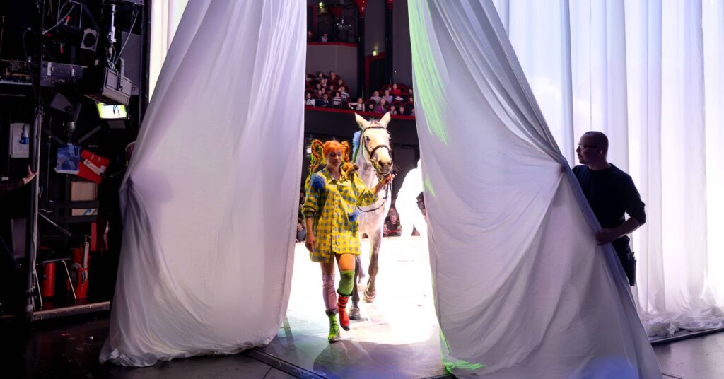 Wenn die Schimmelstute Irma la Douce in der Münchner „Pippi Langstrumpf“-Inszenierung als Kleiner Onkel auf die Bühne tritt, kreischt der ganze Saal. Panik? Null. Dafür haben ihre Trainerinnen Barbara und Laura Obersojer gut gesorgt.