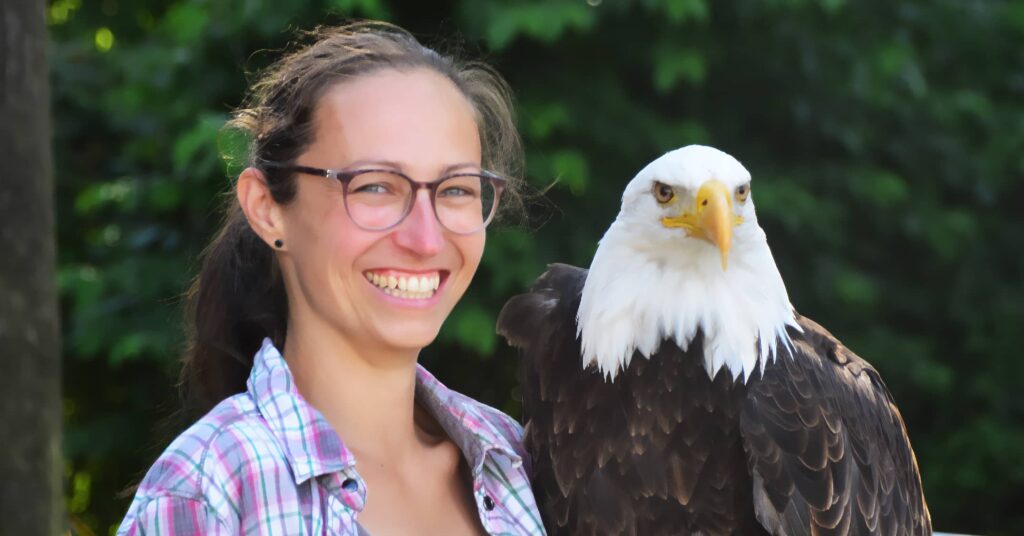 Besuch im Greifvogelpark: Dajana Menter und der Weißkopfseeadler ihres Vaters
