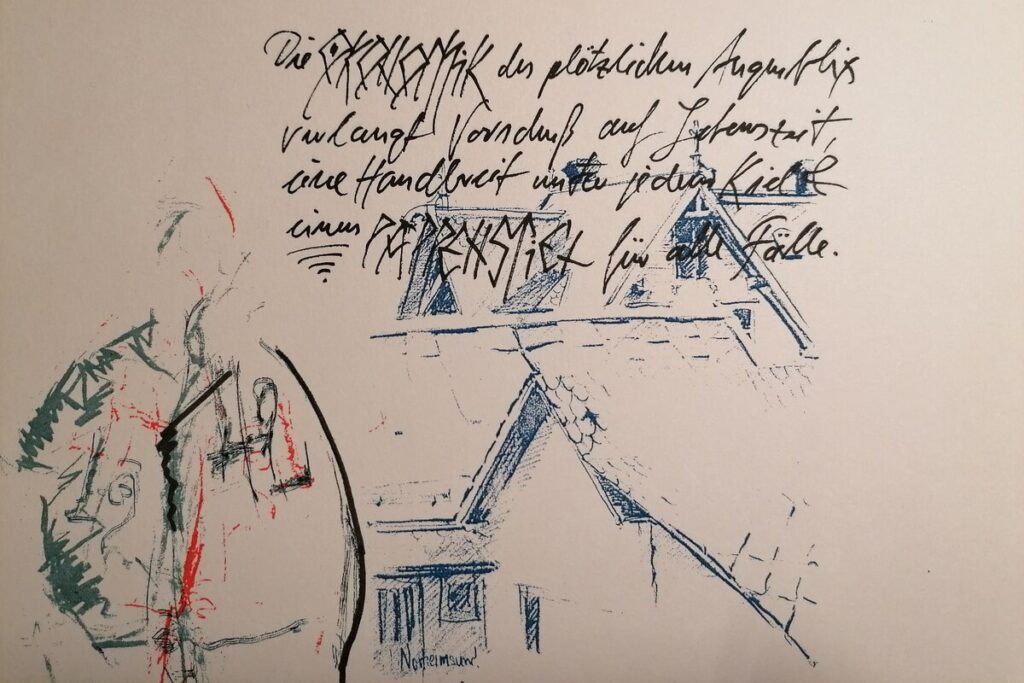 Weiterlesen lässt sich in Frank Willmanns für den Herbst angekündigten Bert-Papenfuß-Biografie mit dem Arbeitstitel „Gewachsen auf dem Mist der DDR“. Vorher erscheint in der Edition Rothahndruck das Künstlerbuch „Es ist nicht so wie es bleibt“ mit Zeichnungen von Klaus Theuerkauf. In einem der Texte empfiehlt Bert Papenfuß, der an Frieden und Beschaulichkeit zweifelte und den der Krieg der Herrschenden verzweifeln ließ, anstelle der aus allen Rohren propagierten Resilienz Renitenz.