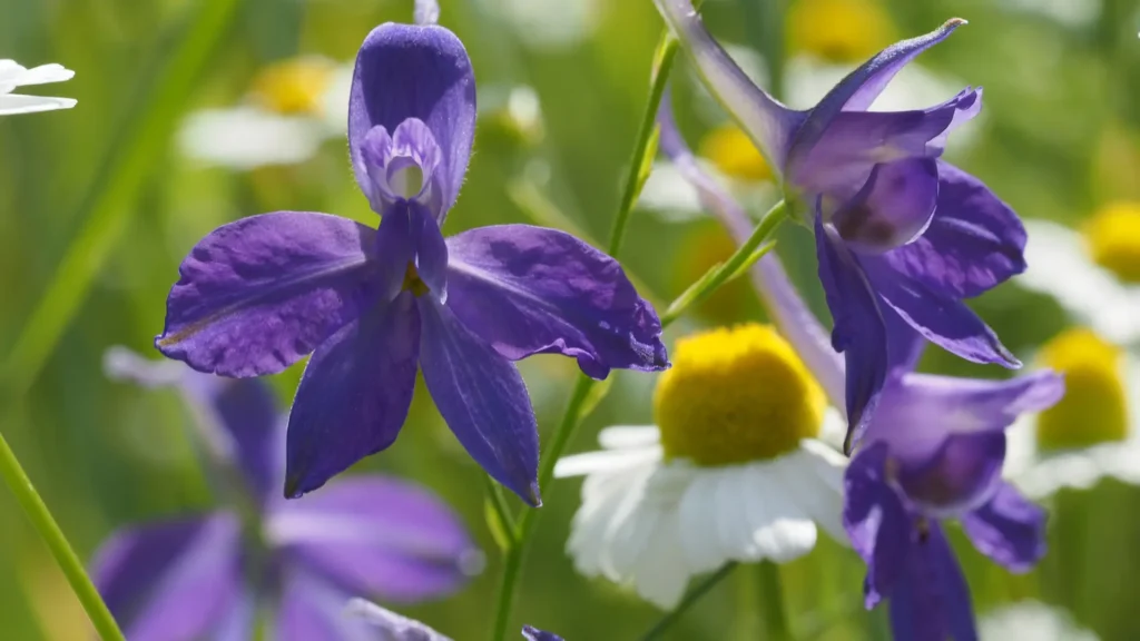 Blau-violette Blüten und charakteristischer Sporn
