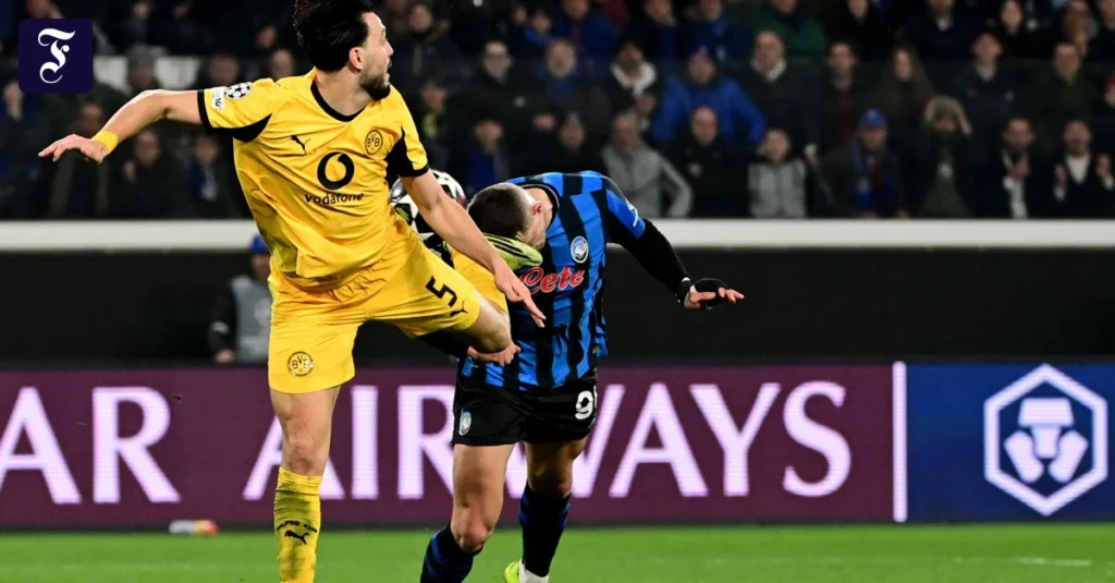 Die Entscheidung fiel erst tief in der Nachspielzeit. Nach einem Fehlpass von BVB-Torwart Gregor Kobel und einer Flanke in den Dortmunder Strafraum traf Ramy Bensebaini Bergamos Stürmer Nikola Krstovic mit der Hacke im Gesicht. Der Schiedsrichter schaute sich die Szene am Videobildschirm an, zeigte Bensebaini Gelb-Rot, Nico Schlotterbeck auf der Bank sogar glatt Rot – und entschied auf Elfmeter. Den verwandelte der gebürtige Berliner Lazar Samardzic zum 4:1 (90.+8). „Das war mein Fehler am Ende“, sagte Kobel. „Es tut mir leid für die Jungs.“