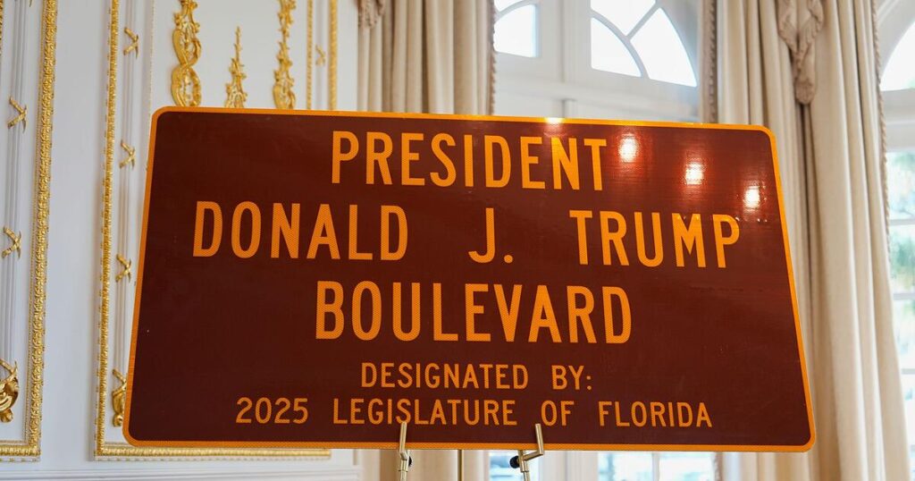 Konkret geht es um einen Abschied des Southern Boulevard, der vom Flughafen direkt zum Anwesen Mar-a-Lago in Palm Beach führt. Dort hält Trump sich häufig am Wochenende auf. „Ich liebe die Menschen aus Florida“, sagte der Präsident. In dem Bundesstaat im Süden der USA genießt der Republikaner viel Rückhalt.