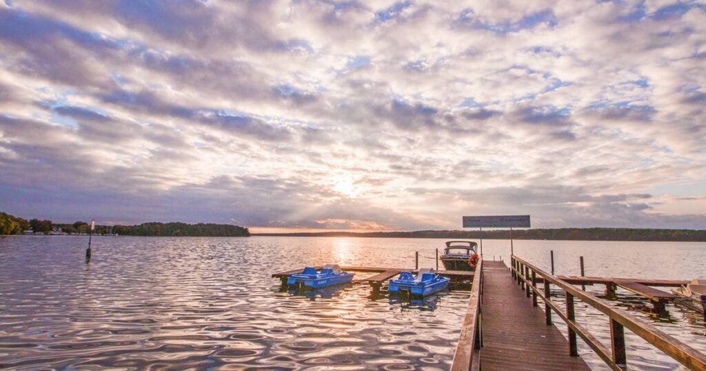 Zweite Station: Wendisch Rietz am Südende des Sees. Mit einem echten Platzhirsch für den Urlaub direkt am Wasser. Im Ferienpark Scharmützelsee warten stolze 170 Ferienhäuser im skandinavischen Stil auf Feriengäste – in gelb, grau, blau und – natürlich – ochsenblutfarbig. Alle Häuser sind individuell ausgestattet und mit der Top-Lage am See und dem breiten Sport- und Freizeitangebot ganzjährig ein Renner. Familien und Kinder finden außerdem im hauseigenen Erlebnispark Scharmuntzelland ein riesiges Spielparadies inklusive Mini- und Streichelzoo, Multisportarena, Kletterwand, Schiffswrack und Tarzanschwinger.