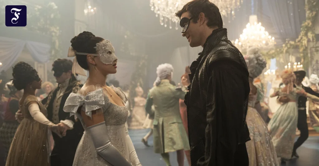 Vorbei an den Sweatshirts mit den Aufdrücken von Hello Kitty, Mickey Mouse und den Figuren Lilo und Stitch, die Rolltreppe runter und dann nach links: Dort, neben den gelben „Winnie-the-Pooh“-Schlafanzügen im Untergeschoss der Kleidungskette Primark an der Frankfurter Zeil hängt ein blau geblümter mit Spitzen verzierter Schlafanzug. Auf dem hellblauen Etikett steht der Name einer der erfolgreichsten Netflix-Serien: „Bridgerton“. Ein paar Schritte weiter steht ein ganzes Regal voller Bridgerton-Artikel in ähnlichem Design: Teller, Teekannen, Gläser, Körbe. Und der Textildiscounter ist nicht das einzige Geschäft auf der Frankfurter Shoppingmeile, das Bridgerton-Artikel anbietet. Dahinter steckt ein größeres Phänomen: Serien wie Bridgerton sind längst nicht mehr nur Serien, sie sind zu wertvollen Marken geworden.