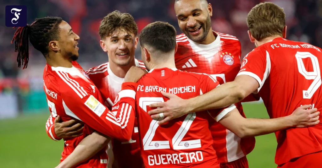 68. Minute: Harry Kane passte in einer Kombination der übrigen Kurzärmeligen im Strafraum zum eingewechselten Raphaël Guerreiro, der den Ball nur noch ins leere Tor schießen musste. 5:1. 69. Minute: Kane schoss dieses Mal am linken Strafraumeck selbst – und zwar so präzise, dass der Ball gegen die Unterseite der Latte, gegen die Innenseite des Pfostens und dann ins Tor flog. 6:1. 76. Minute: Díaz auf Olise, den Spieler des Spiels. 7:1. Als der eingewechselte Leon Goretzka dann auch noch das 8:1 machte (88. Minute), war es dann doch ein Spiel, das man in dieser Saison so noch nicht gesehen hat. Weil acht Tore in einer Partie in dieser Saison selbst für die Rekord-Bayern ein Rekord waren.