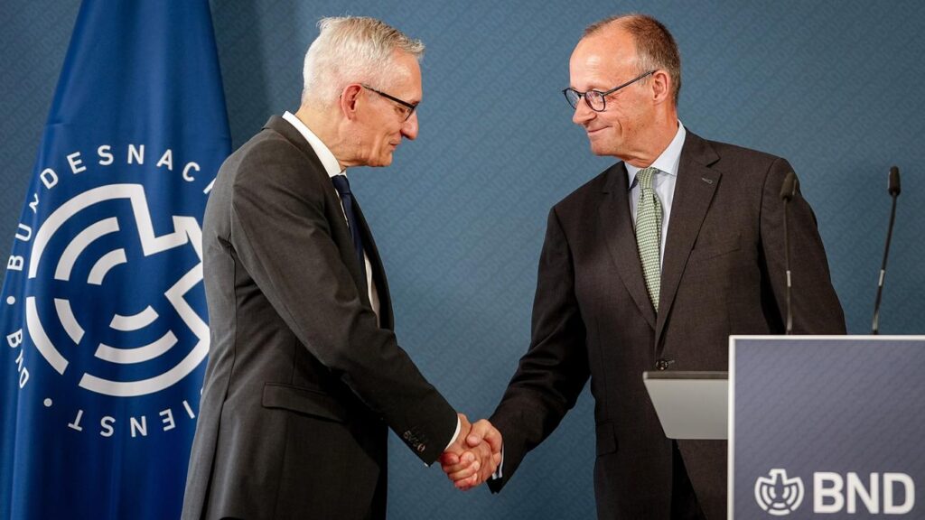 Bundeskanzler Friedrich Merz (CDU) will die deutschen Nachrichtendienste stärken. „Es ist die wichtigste Aufgabe dieser Bundesregierung, neue Grundlagen für ein sicheres, souveränes Deutschland zu schaffen“, sagte Merz bei der Amtsübernahme des neuen Chefs des Bundesnachrichtendiensts (BND), Martin Jäger, in Berlin. Das setze einen „außen- und sicherheitspolitischen Paradigmenwechsel“ voraus, der sich auch auf die Arbeit der Nachrichtendienste beziehen müsse.