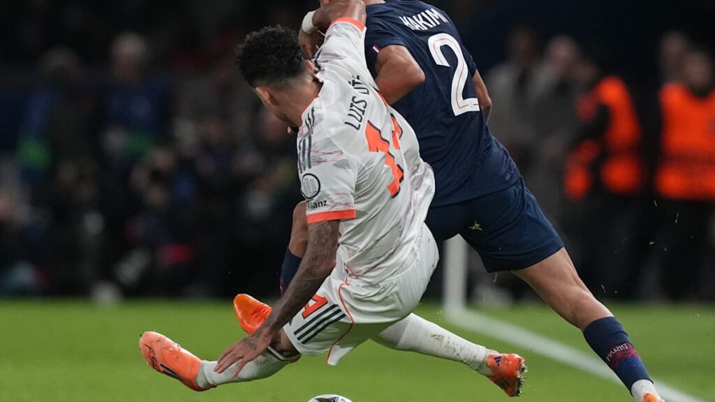 Luis Diaz wollte offensichtlich nur eines – den Konter von Paris St. Germain unterbinden. Der Stürmer des FC Bayern sprintete seinem Gegenspieler Achraf Hakimi hinterher. Diaz hatte keine Chance mehr, den Ball zu erreichen. Der Kolumbianer sprang kurz vor Ende der ersten Halbzeit ab und mähte seinen Gegenspieler mit einer Fluggrätsche von hinten um. Hakimi weinte vor Schmerzen auf dem Rasen und musste auf zwei Mitspieler gestützt den Platz verlassen.