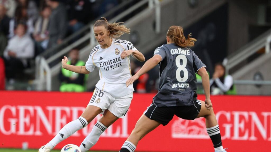 So richtig Königsklasse war es noch gar nicht. In den Playoffs geht es vielmehr ja darum, sich für die Champions League zu qualifizieren. Allein der Name Real Madrid auf der Anzeigetafel genügte aber schon für große internationale Gefühle am Brentanobad. Die spanischen Vizemeisterinnen können zwar noch nicht auf eine Titelsammlung wie die Männer-Abteilung des Klubs verweisen, zeigten aber gleich zu Beginn mit flüssigen Kombinationen und schnellen Passstafetten, dass die SGE sich würde strecken müssen, um diesen Brocken aus dem Weg zu räumen.