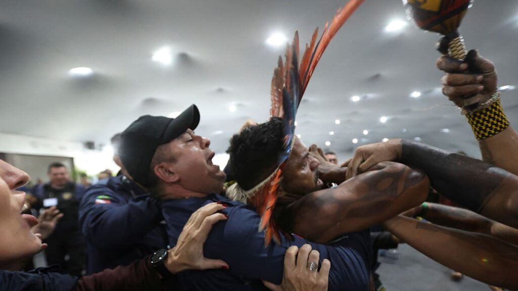 Auf Instagram-Videos von Aktivisten war zu sehen, wie eine riesige Traube Indigener auf den Fluren des Konferenzzentrums Fahnen schwenkte und protestierte.