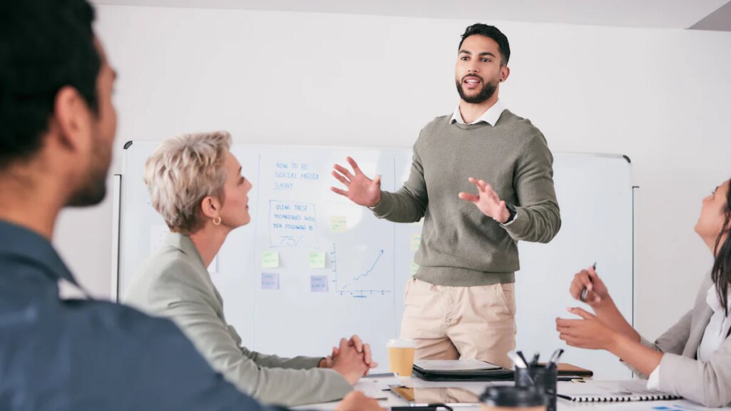 Wenn die Change-Managerin zum Call bittet oder der CEO ein Townhall-Meeting mit der ganzen Company anberaumt, sollten ehrgeizige Angestellte diese Gelegenheit als Chance begreifen. Hier bieten sich eine Bühne und die Möglichkeit, darauf zu performen. Am Ende des Tages folgt daraus der Imperativ, sich unbedingt zu Wort zu melden, sich ins Rampenlicht zu stellen und sich so für höhere Aufgaben zu empfehlen. Der Inhalt der Ausführung spielt eine nebensächliche Rolle. Lieber viel reden und nichts sagen als schweigen und die Bühne der Konkurrenz überlassen. Der Jargon des Business-Sprechs enthält unzählige Bullshit-Begriffe, mit denen sich ein pseudoschlauer Wortsalat anrichten lässt.