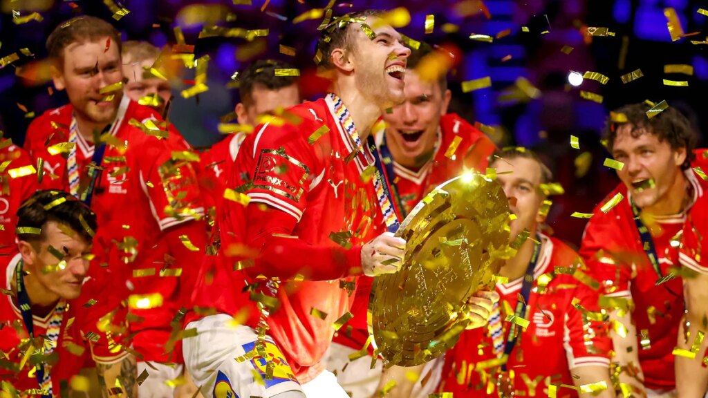 Es war viel Gold im Spiel an diesem Abend für Mathias Gidsel. Ein goldener Ball für den wertvollsten Spieler des Turniers, ein golden bedrucktes Meistertrikot, die große goldene Schale für den Sieger des Turniers und schließlich der goldene Konfettiregen für den neuen Handball-Europameister. Und im Mittelpunkt: der Welthandballer. Natürlich war Gidsel mit 68 Toren in neun Spielen auch bester Torschütze der kontinentalen Titelkämpfe, Gidsel hat die Dänen damit zum letzten noch fehlenden Titel seiner Generation geführt.
