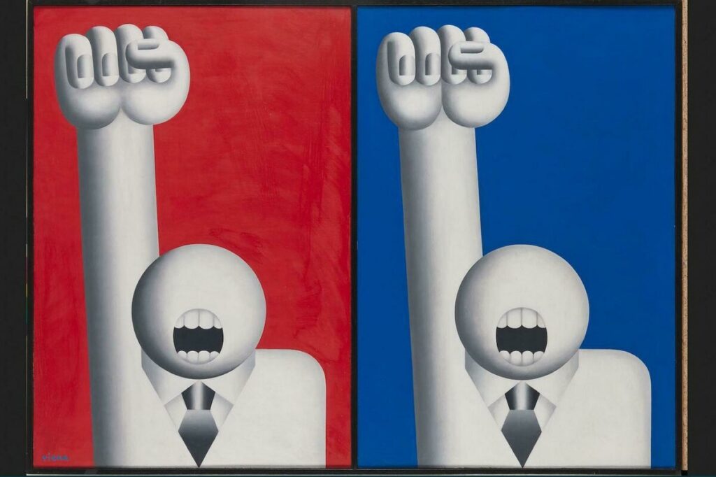 Seine jüngsten Bilder besitzen jetzt wieder Schärfe. Darin thematisiert er etwa eine Aneignung der Parolen der demokratischen Opposition gegen die DDR – „Wir sind das Volk“ – durch eine politische Rechte. Tichas Werk gewinnt im Moment selbstbewusster, autoritär auftretender Bewegungen wieder an trauriger Aktualität.