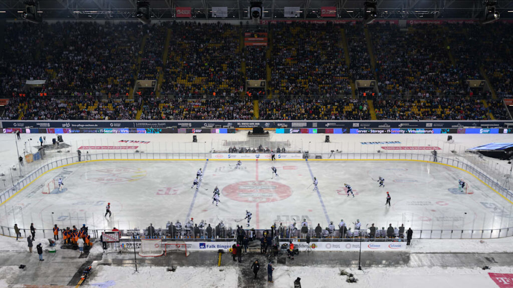 Im ausverkauften Fußballstadion von Dynamo Dresden setzt sich der deutsche Meister gegen die tapfer kämpfenden Gastgeber aus Dresden durch. Liam Kirk trifft für die Eisbären Berlin in der Verlängerung zum Sieg im DEL-Freiluftspiel.