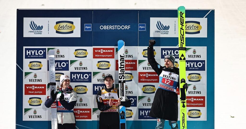 Skisprung-Bundestrainer Stefan Horngacher erfuhr mitten im Interview vom späten Glück für seinen Schützling Felix Hoffmann. Dieser rückte durch die Disqualifikation des Slowenen Timi Zajc beim Auftaktspringen der Vierschanzentournee noch von Platz vier auf Rang drei vor. Von dieser Nachricht wirkte der deutsche Chefcoach aus Österreich zunächst etwas irritiert, bevor er im Auslauf der Schanze am Schattenberg in Oberstdorf freudig ausrief: „Das ist der Falsche.“