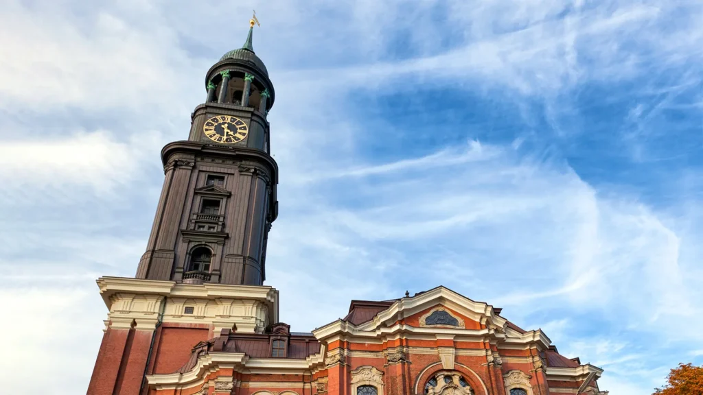 Der charakteristische kupferne Helmturm der Michaeliskirche war lange Zeit das Erste und Letzte, was Seeleute auf großer Fahrt von Hamburg sahen. Für viele von ihnen bedeutete sein Anblick deshalb Heimat. Die weithin sichtbare Turmuhr ist die größte Deutschlands – allein der große Zeiger ist fast fünf Meter lang.
