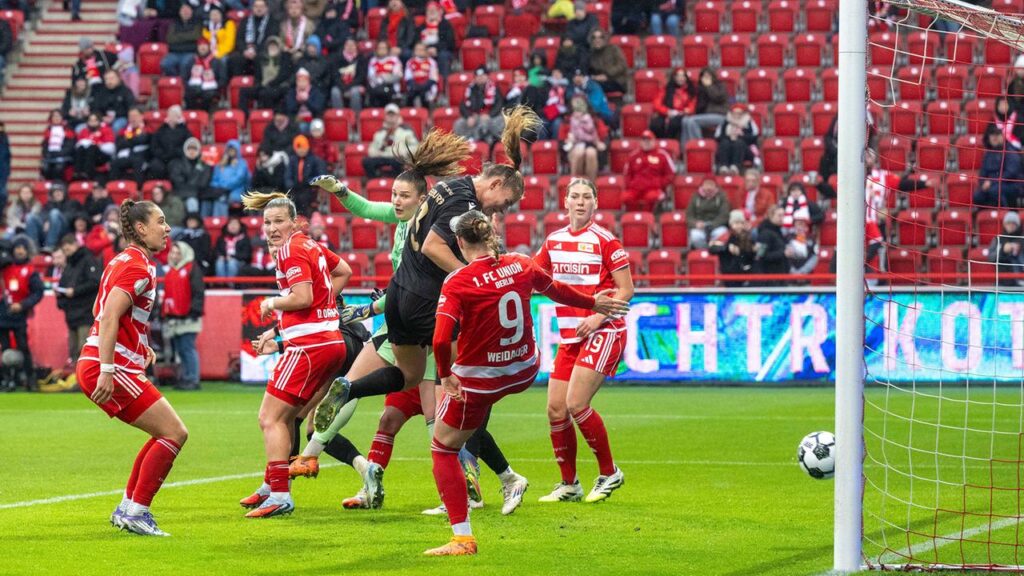 Erst in der 14. Minute wurde es mal gefährlich: Sophie Weidauer traf den Ball nach einer hohen Hereingabe vom linken Flügel nicht richtig, dann zielte Antonia Halverkamps mit ihrem Nachschuss nur knapp am Kasten vorbei. Acht Minuten später hatten die Union-Fans den Torschrei schon auf den Lippen, doch Jenas Kapitänin Toma Ihlenburg lenkte einen Kopfball von Dina Orschmann in letzter Not auf der Linie noch an die Latte (22.).