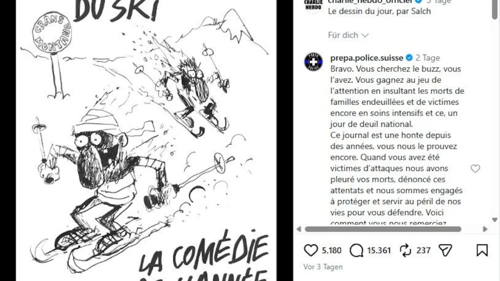 Fast elf Jahre nach dem Attentat, das die französische Satirezeitung Charlie Hebdo in der ganzen Welt bekannt machte, sorgt eine aktuelle Karikatur für Empörung im noch neuen, aber schon dramatisch bewegten Jahr. Die Zeichnung nimmt auf die Katastrophe im Club Le Constellation in Crans-Montana Bezug, diesen wahr gewordenen Albtraum mit so vielen toten und schwer verletzten jungen Leuten.