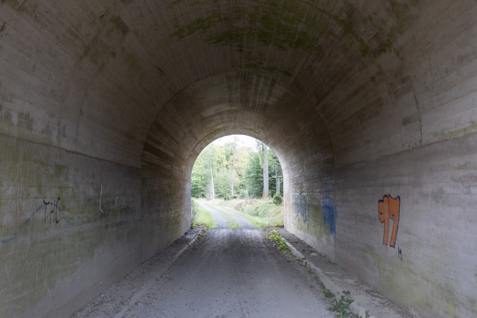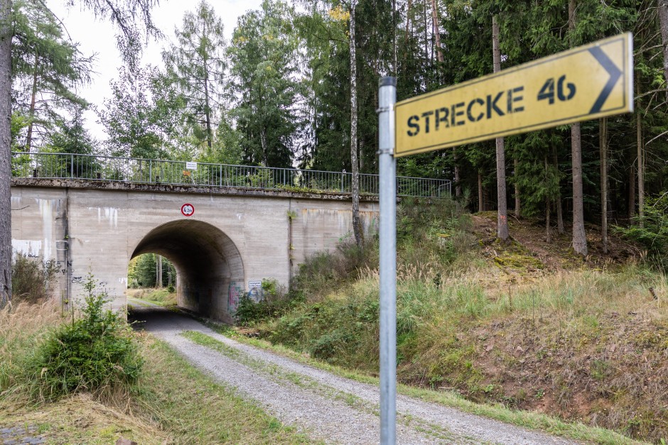 Doch an manchen Stellen bleiben Wanderer verwundert stehen. Sie entdecken Seltsames, das so gar nicht zu einer unberührten Natur passt. Da sehen sie plötzlich einen massiven Betonklotz, stark verwittert und teilweise mit Moos bewachsen. Es sind die Reste einer Autobahnbrücke.