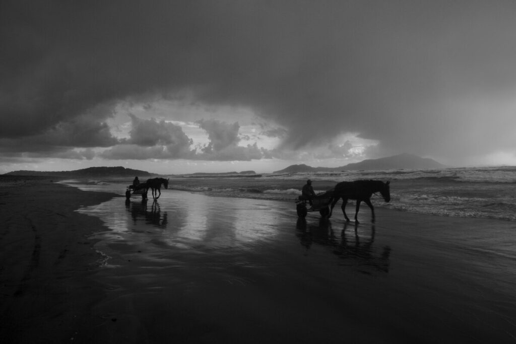 Und im Bauch der Schiffe, in der Totale ganz winzig: syrische Arbeiter, die auf den Bergen von Weizen – die in der Nahaufnahme erst recht durch Rosis markantes Schwarz-Weiß wirken wie die rutschigen Abhänge des Vesuvs – herumrutschen, das Schiff bis auf das letzte Korn reinigen und auf ihre Weise für die Ernährung Europas sorgen, auch wenn es weiten Teilen Europas mehr als recht ist, wenn sie im Schiff verborgen bleiben und nicht gesehen werden.