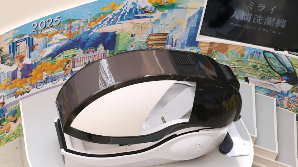 Gehirnwäsche leistet der Apparat nicht, das spricht für ihn. Und die Idee dazu stammt aus dem Jahr 1970, als die Expo zum ersten Mal in Osaka war. Schon damals wurde eine Menschen-Waschmaschine ausgestellt. Man erreichte sie über eine Leiter. Der Kopf schaute raus. Ultraschall sollte das Bad darin ergiebiger machen. Die Maschine setzte sich nicht durch. Vielleicht hat der Human Washer mehr Erfolg. Dass er die herkömmliche Dusche schnell verdrängt, ist eher nicht zu erwarten.