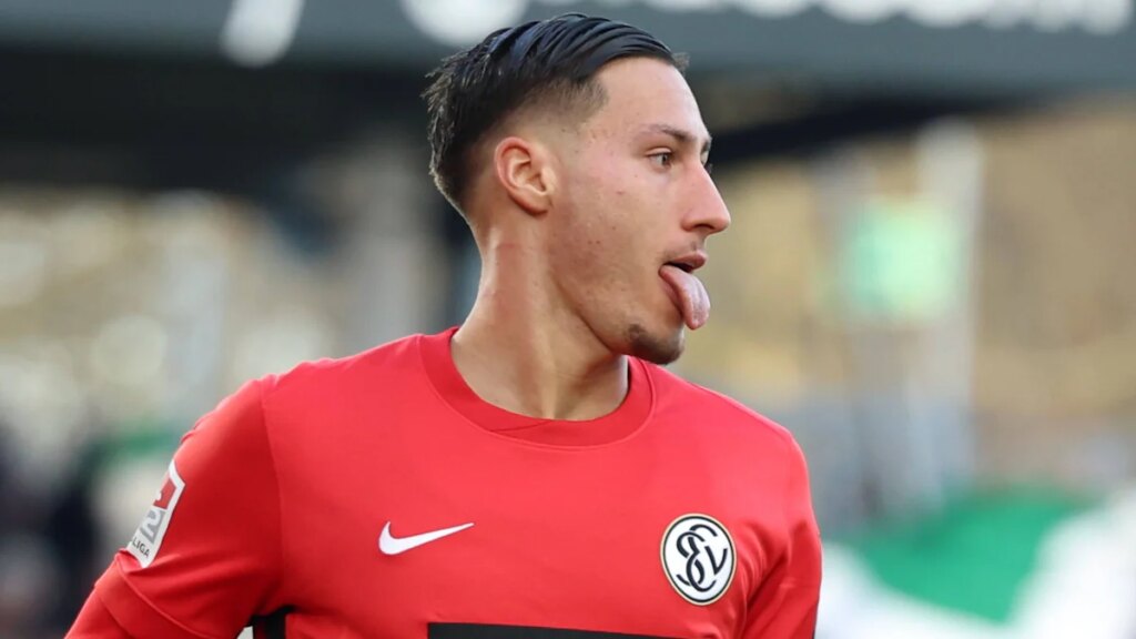 Eine andere Haltung soll nun also Younes Ebnoutalib garantieren. Der 22-Jährige ist ein weiterer Beleg für die Schnelllebigkeit des Geschäfts, in dem Stürmer schneller im Kurs steigen als KI-Aktien. Der gebürtige Frankfurter war erst im vergangenen Januar für den Spottpreis von 50 000 Euro vom FC Gießen aus der Regionalliga zum Zweitligisten SV Elversberg gewechselt – und darüber schon heilfroh. Denn der Profi mit marokkanischen Wurzeln, der in der Jugend unter anderem für Rot-Weiss Frankfurt kickte, stand vor zwei Jahren vor dem Nichts, weil er nach einem Mittelfußbruch den Vertrag beim italienischen Drittligisten AC Perugia aufgelöst hatte.