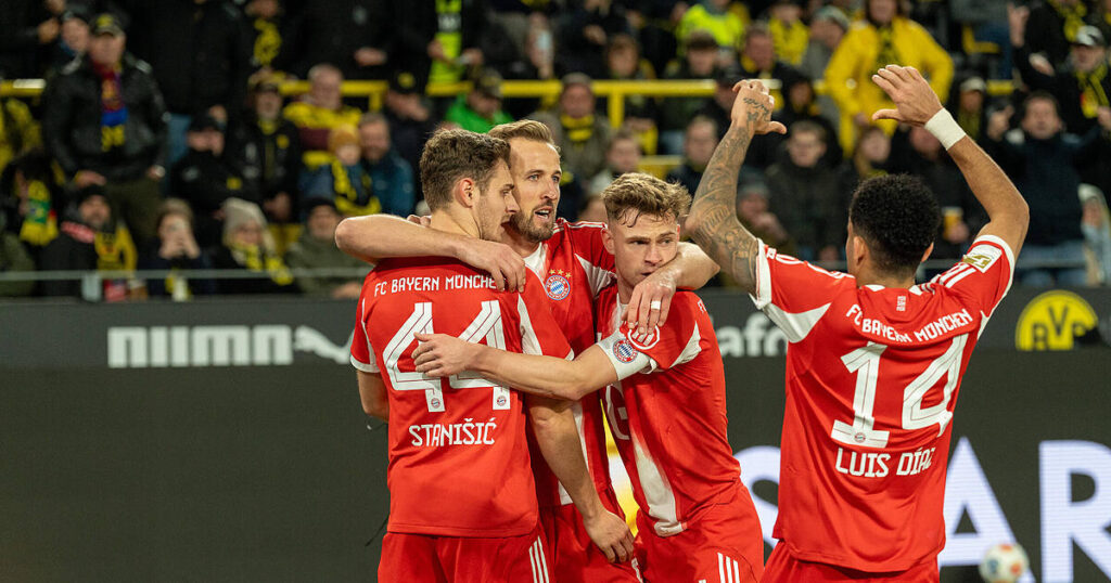 Tabellenzweiter gegen Meister und Tabellenführer: Im deutschen Klassiker gingen die Dortmunder durch den Kopfballtreffer von Nico Schlotterbeck mit 1:0 in Führung. Doch nach der Pause zeigte die Mannschaft von Trainer Vincent Kompany ihr wahres, besseres Gesicht und zeigte dem Verfolger die Grenzen auf. Auf Vorlage von Serge Gnabry erzielte Kane mit links den Ausgleich (54.) und verwandelte den Foulelfmeter (Schlotterbeck an Josip Stanisic) zum 2:1. Nach dem glücklichen BVB-Ausgleich durch Svensson (83.) sorgte Kimmich für den umjubelten Siegtreffer.