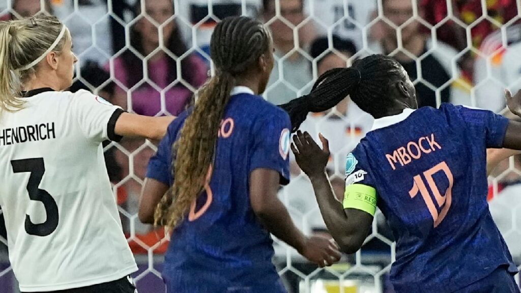 Die deutsche Nationalmannschaft kämpft gegen Frankreich um den Einzug ins Halbfinale der Frauen-EM. Doch schon in der Anfangsphase schwächt sich das Team wieder einmal selbst. Kathrin Hendrich zieht ihrer Gegenspielerin an den Haaren – mit schlimmen Folgen.