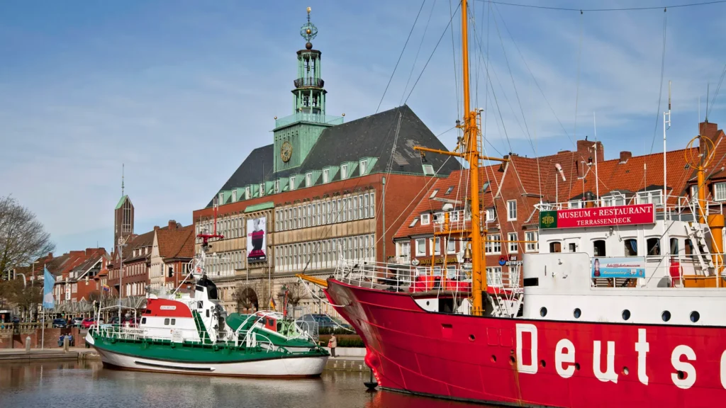 Museumsschiffe vor dem Rathaus, dicke Pötte im Industriehafen: Emden lebt seit jeher von der Schifffahrt. Die Kunsthalle zeigt Werke von Malern wie Franz Marc und Emil Nolde.