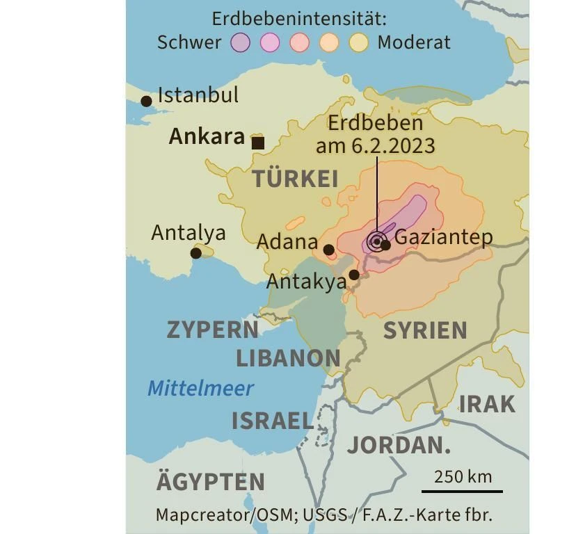 Am 6. Februar 2023 erschütterten zwei Erdbeben den Südosten der Türkei und den Norden Syriens. Mindestens 62.000 Menschen starben. Häuser wurden zu Ruinen, ganze Städte lagen in Trümmern. Die Stadt Antakya, zwischen Mittelmeer und syrischer Grenze, traf es besonders schwer. Schätzungen zufolge wurden dort neunzig Prozent aller Häuser zerstört, sind unbewohnbar. Auch drei Jahre später klaffen überall Lücken. Lastwagen und Bagger ziehen durch die Straßen, der Lärm dröhnt, Atmen fällt schwer.