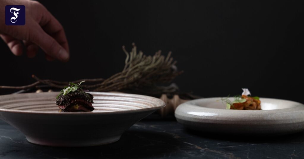 So opulent geht es weiter. Eine verschwenderische Portion vom bretonischen Hummer, der erst sanft gegart und dann unter dem Salamander temperiert wird, bekommt eine genauso großzügige Entourage aus Fingerlime, Buttermilch, Koriander, Krustentierfond, fermentiertem Knoblauch, Zitronengras-Mayonnaise und Topinambur als Chip, Gelee und Crunch. Das ist ein hochriskanter, aber gelungener Teller, weil trotz der enzyklopädischen Geschmacksvielfalt eine klare Hierarchie herrscht und niemand die Hauptrolle des Hummers infrage stellt. Eher in Richtung Aromen-Punk geht hingegen das Lammbries aus der Normandie, das mit Wintertrüffeln, Berberitzen, Pak Choi, Nonnenziest, schwarzer Walnuss und Kimchi-Velouté einen transkontinentalen Pogo tanzt und die Binsenerkenntnis bewahrheitet, dass sehr viel nicht immer sehr viel hilft.