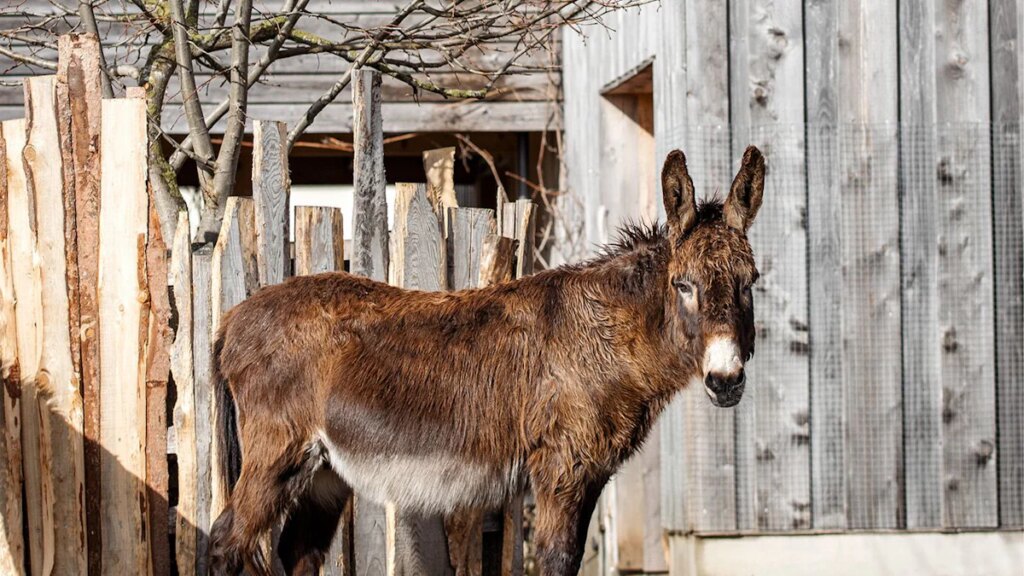 Wobei es manchmal natürlich auch sehr klug sein kann, sich in erster Linie warm zu halten. Zum Verabschieden kommen Baumanns sechs Esel durchaus nicht aus dem Stall auf die Koppel in den Februarwind getrabt. In aller Besonnenheit bleiben sie, wo sie sind, im Trockenen.