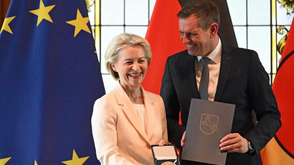 Für ihre Verdienste um Niedersachsen, Deutschland und Europa ist Ursula von der Leyen (CDU) mit der niedersächsischen Landesmedaille geehrt worden. Die Präsidentin der Europäischen Kommission erhielt damit die höchste Auszeichnung des Landes. «Sie gehören zu den prägenden politischen Persönlichkeiten unserer Zeit», sagte Ministerpräsident Olaf Lies (SPD) zu von der Leyen bei der Verleihung in Hannover.