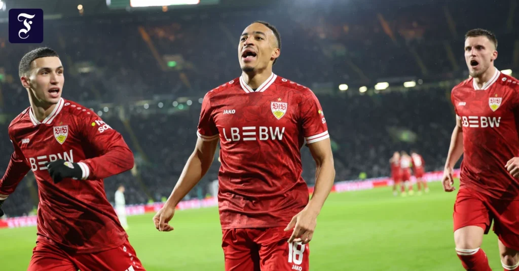 Dank dem zweifachen Torschützen Bilal El Khannouss, Jamie Leweling und Tiago Tomás hat der VfB Stuttgart glänzende Aussichten auf das erste Europapokal-Achtelfinale seit 13 Jahren. Mit dem verdienten 4:1 (2:1) im emotionalen Auswärtsauftritt beim schottischen Meister Celtic Glasgow stehen die Schwaben vor dem Play-off-Rückspiel in der Europa League am kommenden Donnerstag sehr gut da.