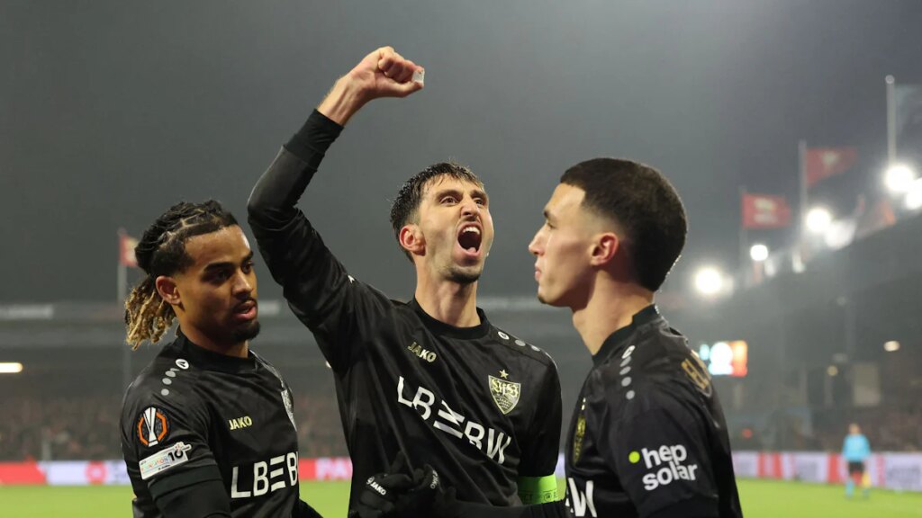 Die Fans fehlten, die Leistung stimmte: Der VfB Stuttgart hat in der Fußball-Europa-League einen wichtigen Sieg eingefahren und sich im Kampf um die Playoffs eine gute Ausgangsposition verschafft. Die Schwaben siegten am späten Donnerstagabend bei den Go Ahead Eagles Deventer souverän mit 4:0 (2:0) und schoben sich in der Tabelle ins vordere Mittelfeld. Dank der Treffer von Jamie Leweling (20., 35.), Bilal El Khannouss (59.) und Badredine Bouanani (90.+4) kann der VfB gar wieder auf den direkten Einzug in die Runde der besten 16 hoffen, die Top acht sind bei noch drei ausstehenden Partien nur noch einen Zähler entfernt. „Heute so eine Leistung abzurufen ist sehr gut“, sagte Doppeltorschütze Leweling bei RTL, „darauf lässt sich aufbauen.“ Teamkollege Deniz Undav ergänzte: „Wir haben hier nichts anbrennen lassen und das Spiel schnell gefinisht.“
