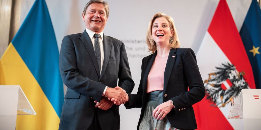 Außenministerin Beate Meinl-Reisinger hat den früheren Verbund-Vorstandsvorsitzenden Wolfgang Anzengruber als den österreichischen Sonderkoordinator für den Ukraine-Wiederaufbau präsentiert