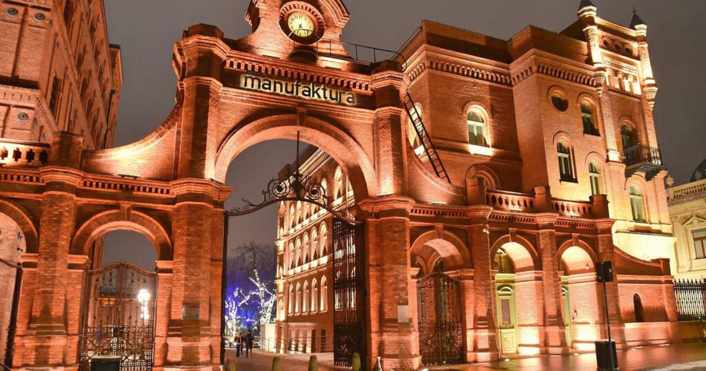 Es schneit in Lodz. Die Flocken malen weiße Tupfen auf die roten Backsteinwände von „Manufaktura“. Die Klinkerbauten der historischen Fabrikanlage zieren aufwendig gestaltete Fassaden, Türme, Tore. Seit fast 20 Jahren dient das 27-Hektar-Areal einschließlich renovierter Werksgebäude als Einkaufszentrum mit Hotel, gastronomischen und Freizeitangeboten.