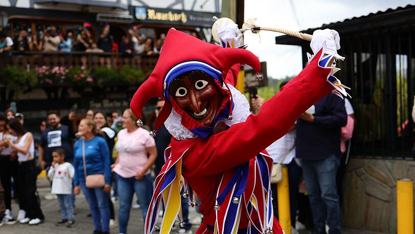 Durch die Straßen zogen maskierte Menschen in Jokili-Kostümen, eine Tradition, die vor 50 Jahren in Colonia Tovar eingeführt wurde. Die Narrenfiguren sind ein alter Fastnachtsbrauch in Endingen am Kaiserstuhl im Südwesten Baden-Württembergs.