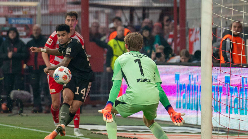 Als alle mit einem Pass in den Strafraum rechneten, ging Diaz noch zwei Schritte und hämmerte den Ball aus einem ganz spitzen Winkel unter die Latte. Union-Torwart Frederik Rönnow riss erst die Arme hoch, als der Ball schon im Netz zappelte. „Anschauen und genießen. Das ist einfach Weltklasse, wie Diaz das mit seiner individuellen Klasse macht“, sagte DAZN-Experte Tobias Schweinsteiger.