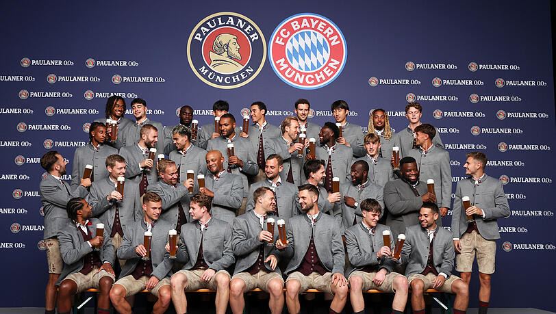 Kurz vor dem Saisonauftakt am Freitag gegen RB Leipzig (20.30 Uhr, Sky und Sat.1) lachten und prosteten sich die Bayern-Stars am Dienstag in Tracht zu.
