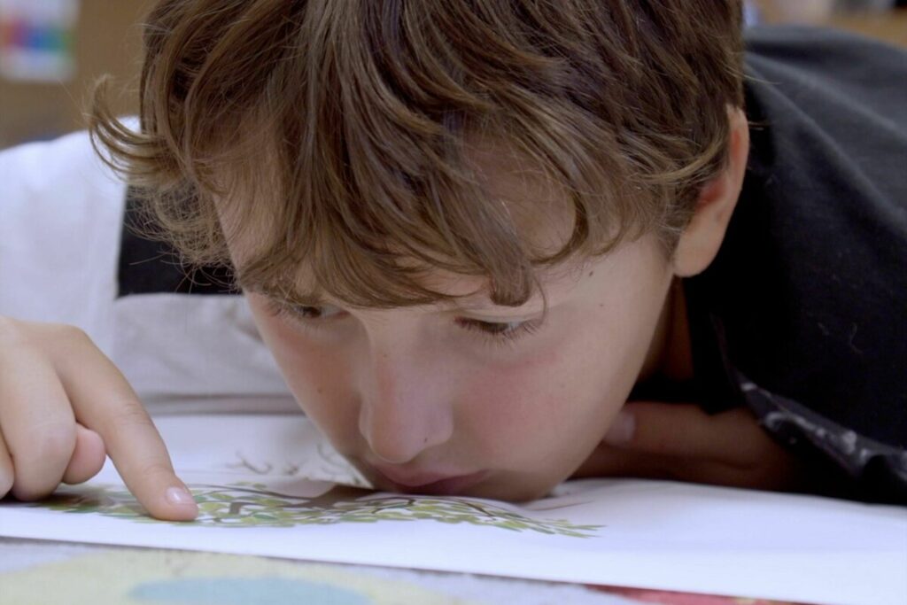 In einer Wiener Bildungsstätte für blinde und sehbehinderte Kinder gedreht, widmet er sich der Bedeutung der Wahrnehmung von Tönen für unseren Umgang mit der Welt. Dabei taucht der Film tief ein in wildes Spiel und sacht gelenkte Lernsituationen, wo neben gedichteten „Elfchen“ die Klicksonar genannte Methode zur Mobilitäts-Aktivierung eine große Rolle spielt, die durch Zungenschnalzen einen Echoraum im eigenen Gehirn und Orientierung schafft.